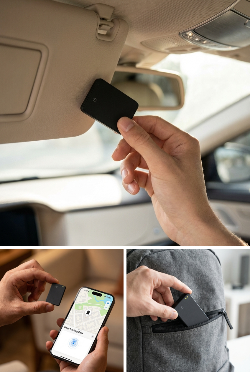 Traqo קטן משליש מגודל כרטיס אשראי רגיל. נכנס בקלות לארנק, תרמיל, מזוודה, כיס מעיל — כל מקום שחשוב לך.